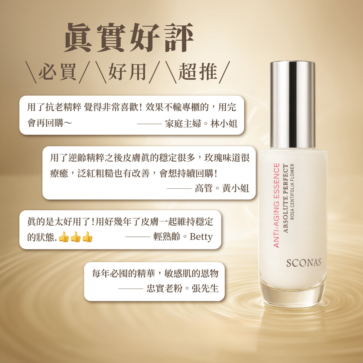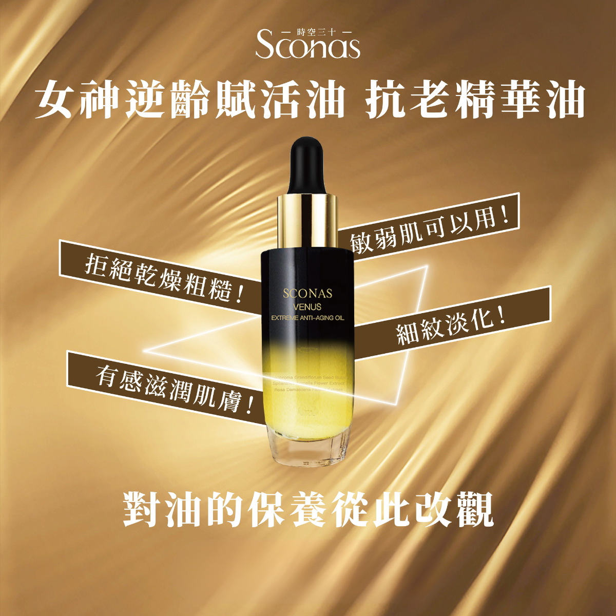 Sconas堅持保有原植萃特性,產品無防腐劑、無香精、無色素,因此,女神逆齡賦活油的香氣及色澤皆來自於大自然最純淨的禮讚。