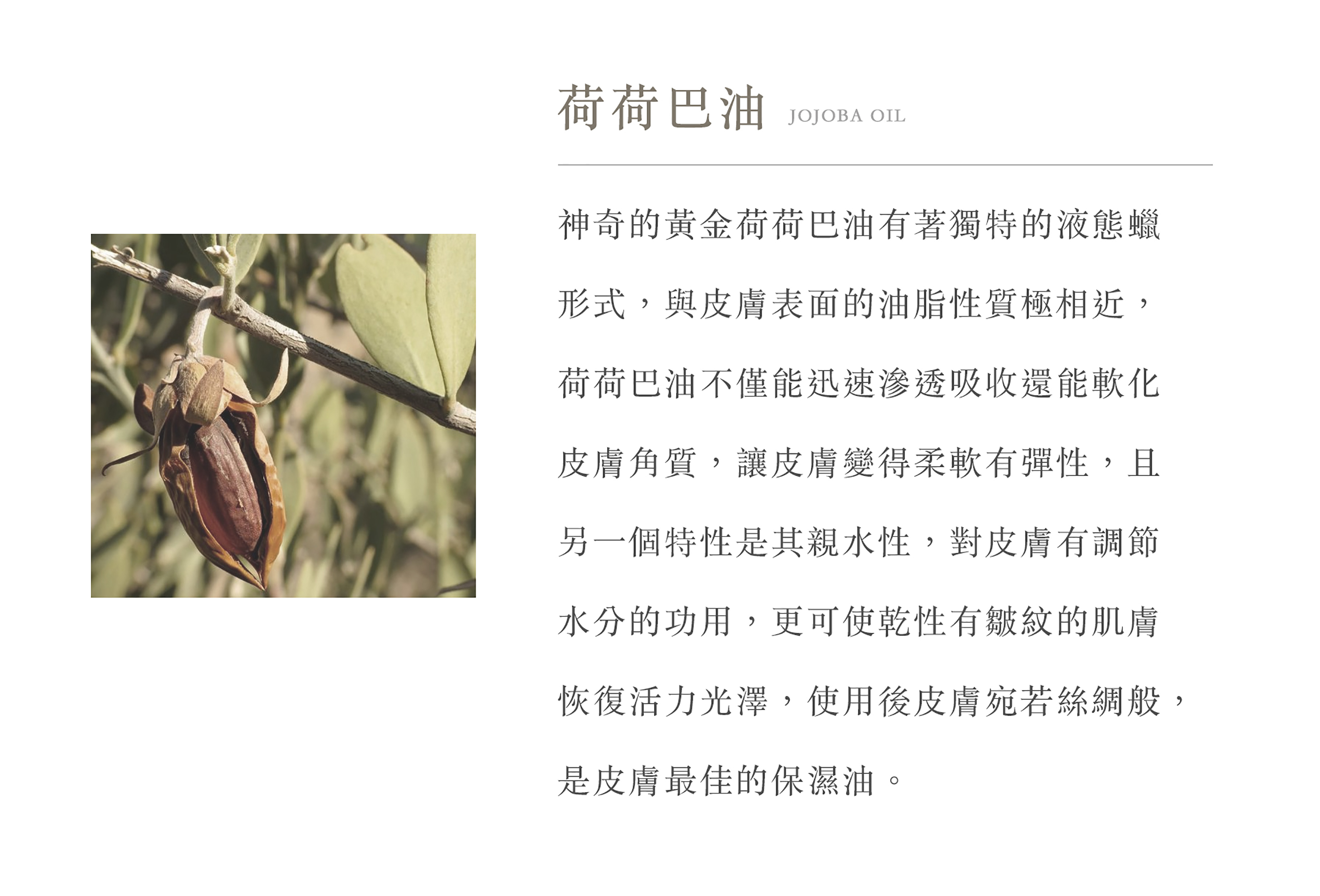 ✦ 添加100%有機玫瑰純露、黃金荷荷巴油、谷布阿蘇樹果,深層滋潤,修護抗老