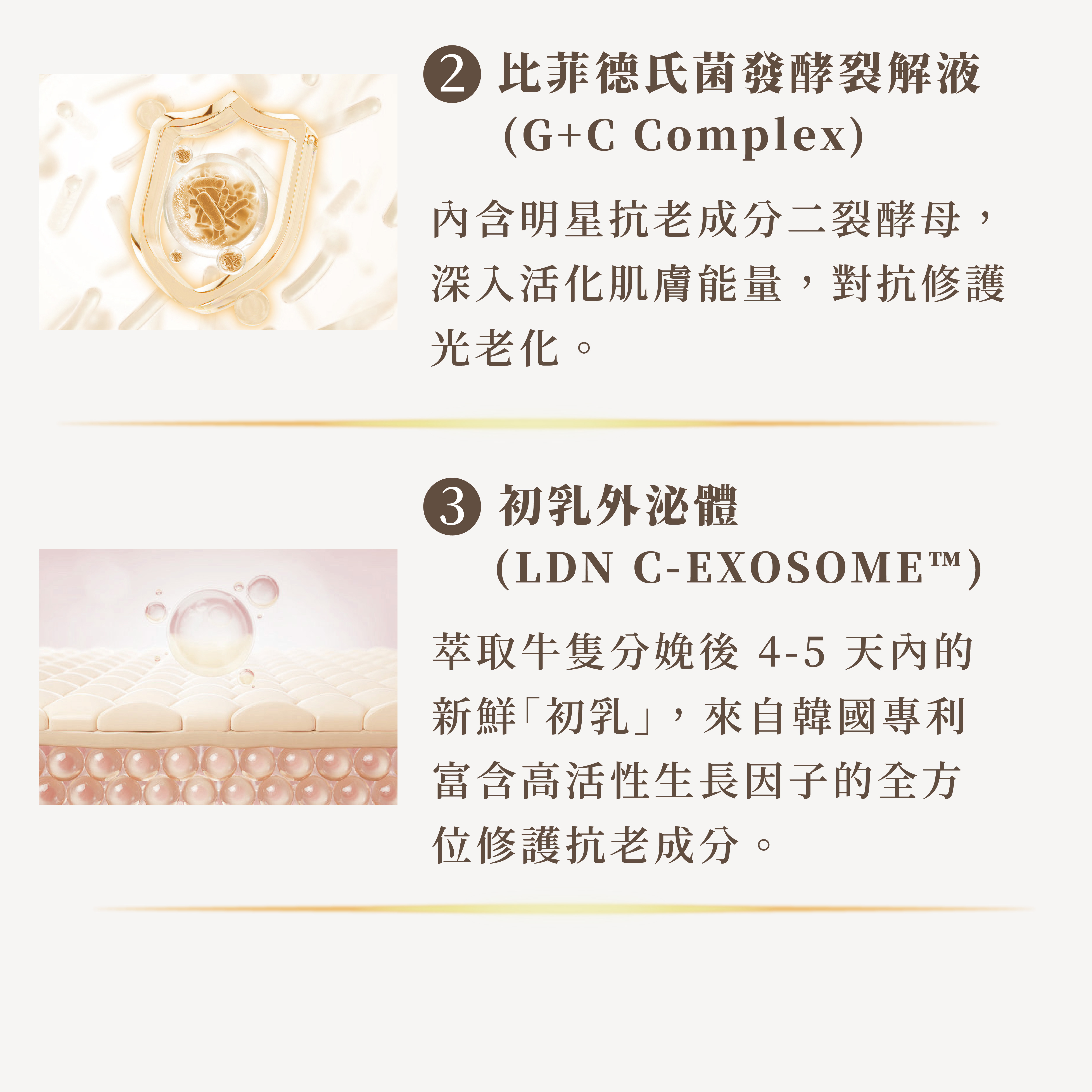 ✦ 高濃度二裂酵母與比菲德氏菌發酵液,活化代謝,強化肌膚屏障