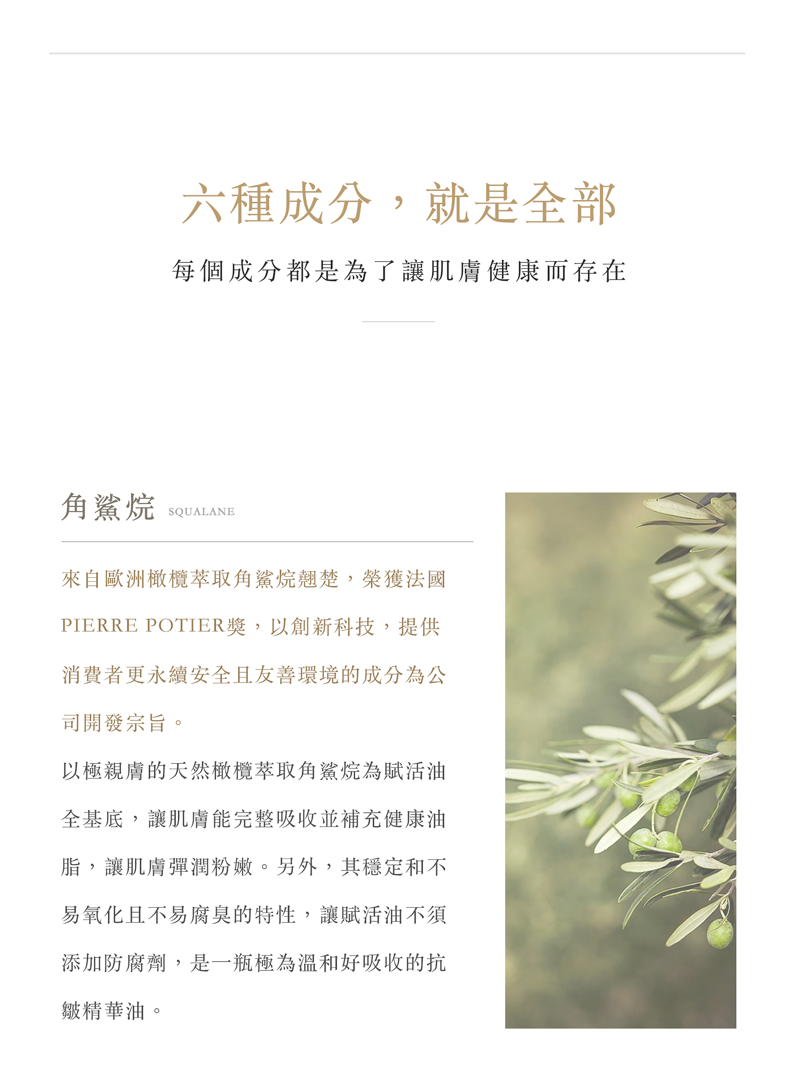 • 六種成分,就是全部。