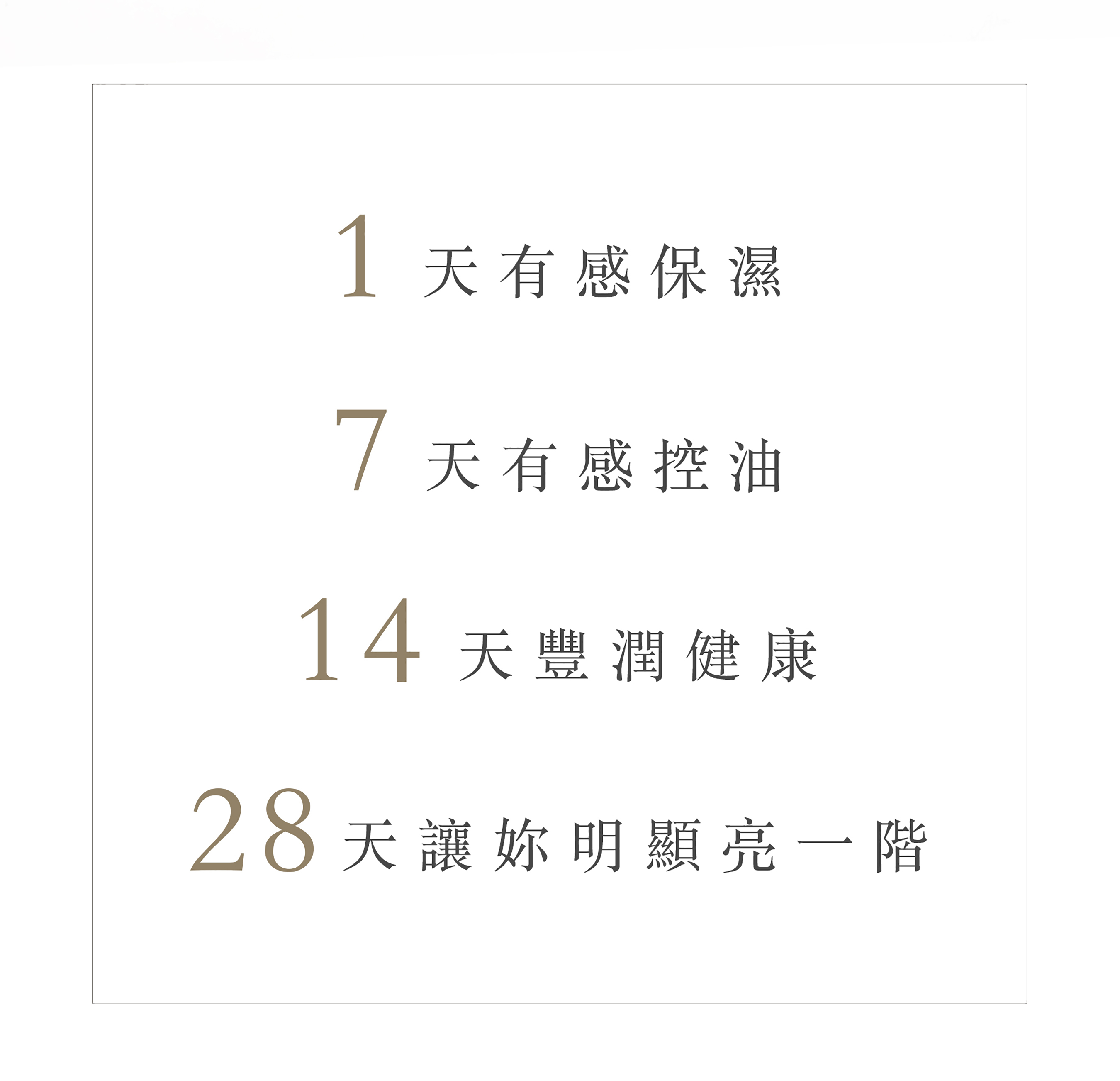 | 主要訴求 | 一瓶對抗肌膚老化危機,淡化細紋緊緻肌膚,改善暗沉、毛孔粗大,強化肌膚屏障並穩定膚況,深層保濕不黏膩,重現年輕緊緻光采 |