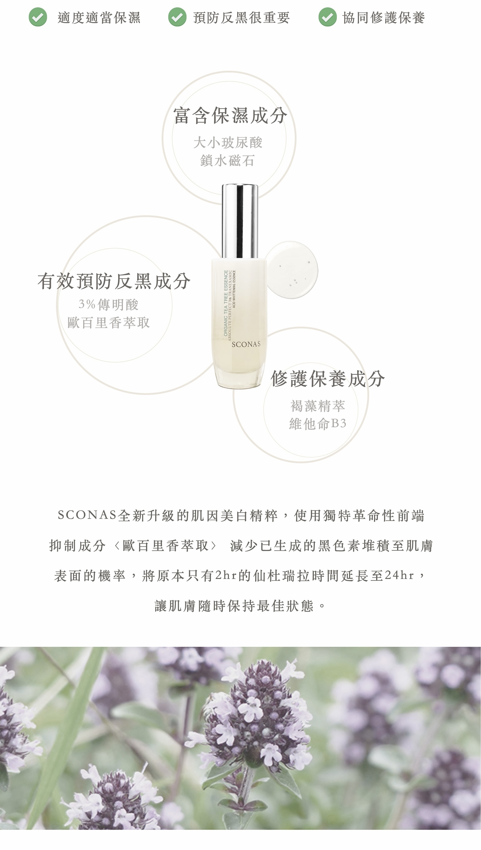 ▪ 3%日本頂級傳明酸+歐百里香萃取+維他命B3