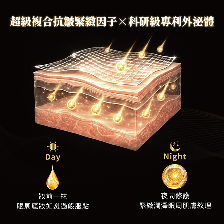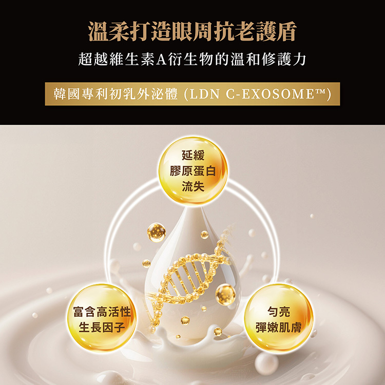 以 超級複合抗皺緊緻因子x科研級專利初乳外泌體 打造眼周緊緻隱形張力網