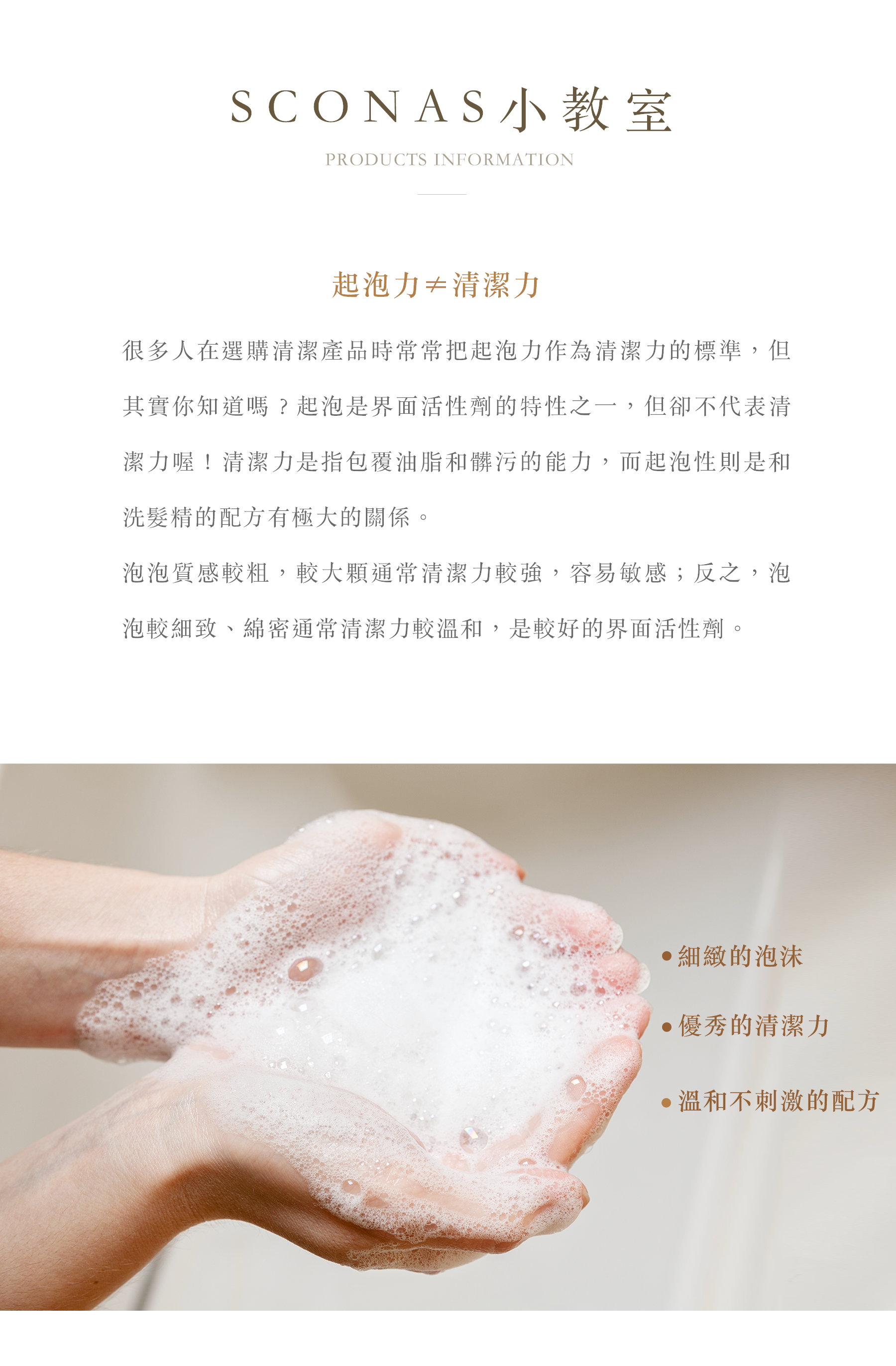 ✦ 溫和胺基酸型界面活性劑,無添加矽靈、SLS、SLES 等刺激成分,頭皮清爽無負擔