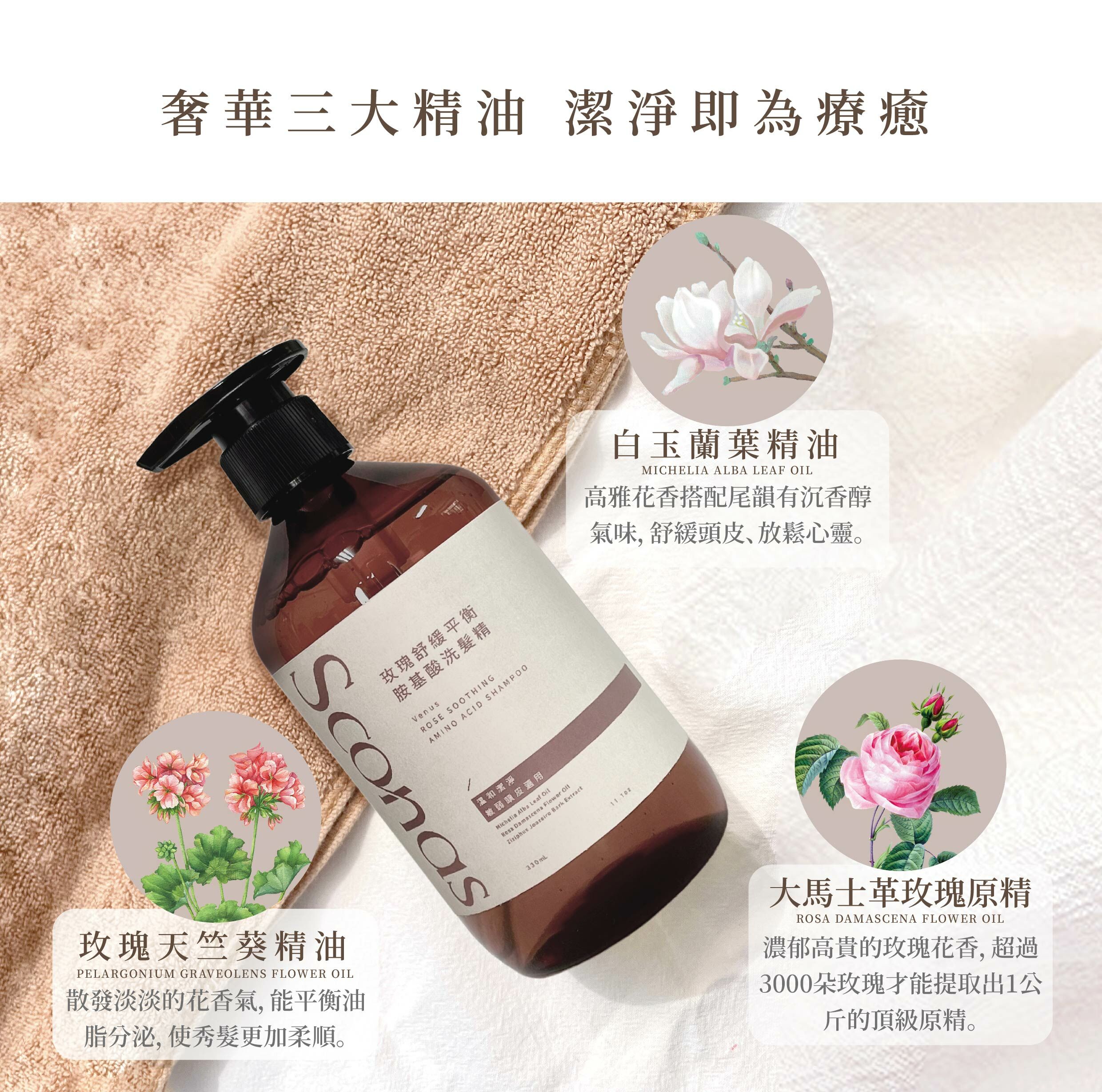 買<玫瑰舒緩平衡胺基酸洗髮精 330ml > 送護髮油3ml*1(氣味隨機)
