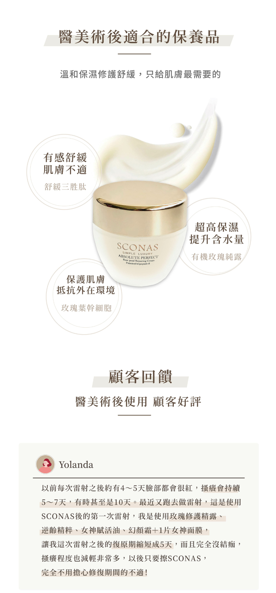 * 提醒您:沒有任何一樣保養品適合所有人,使用後若有不適,請立即停止使用並觀察肌膚後續狀況,聯繫SCONAS客服,若有需要,視情況尋求皮膚科醫師協助。